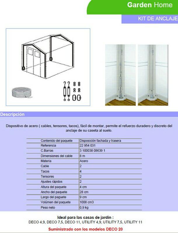 • Kit di ancoraggio al suolo per casette Deco ed Utility della azienda Grosfillex. Il kit permette di ottenere un ulteriore stabilità alle casette Grosfillex•