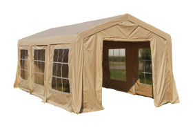 Dentro troverete le Pareti laterali composte da: 2 tende da 6 mt. con finestre trasparenti e 2 tende da 3 mt. con porta chiusura zip