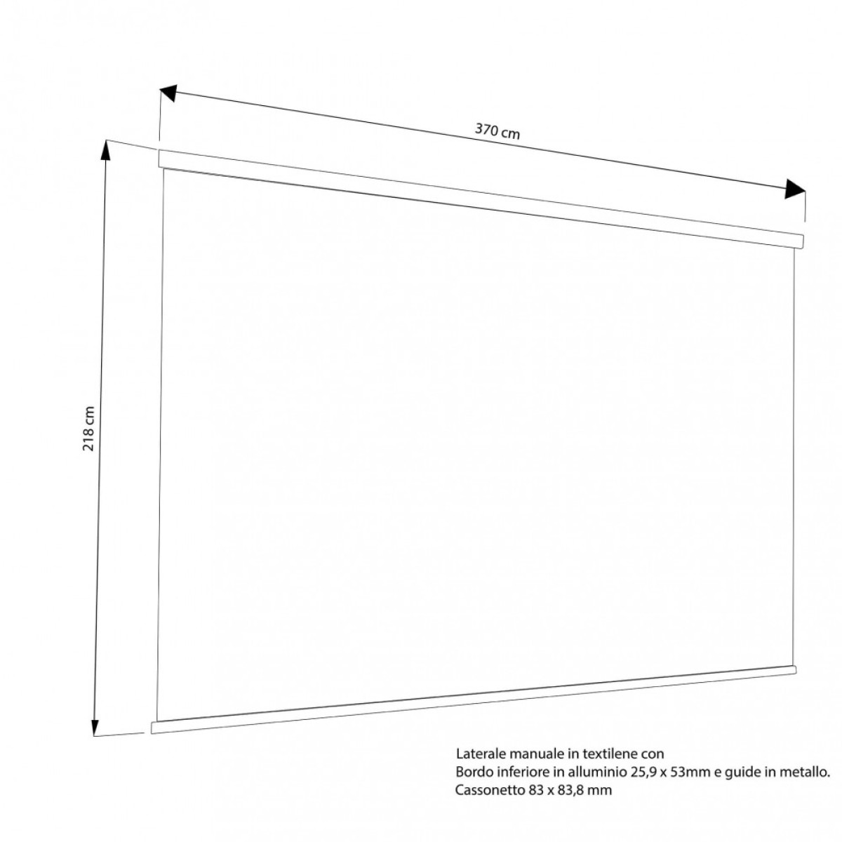 Laterale manuale in textilene ANTRACITE o BIANCO con bordo inferiore in alluminio 25,9x53mm guide in metallo, cassonetto 83x83.8mm Dimensioni: cm 270 x 238