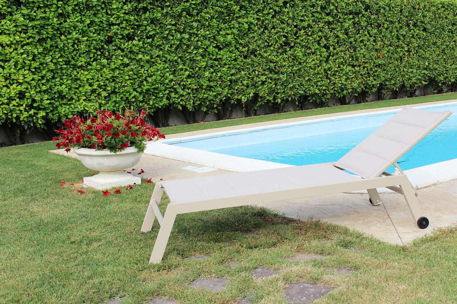 Tutto questo è possibile grazie una ricerca dei migliori materiali: la struttura in alluminio conferisce una resistenza e una duratura ineguagliabile, la rifinitura in textilene conferisce un'aspetto elegante che non stona in nessun ambiente.