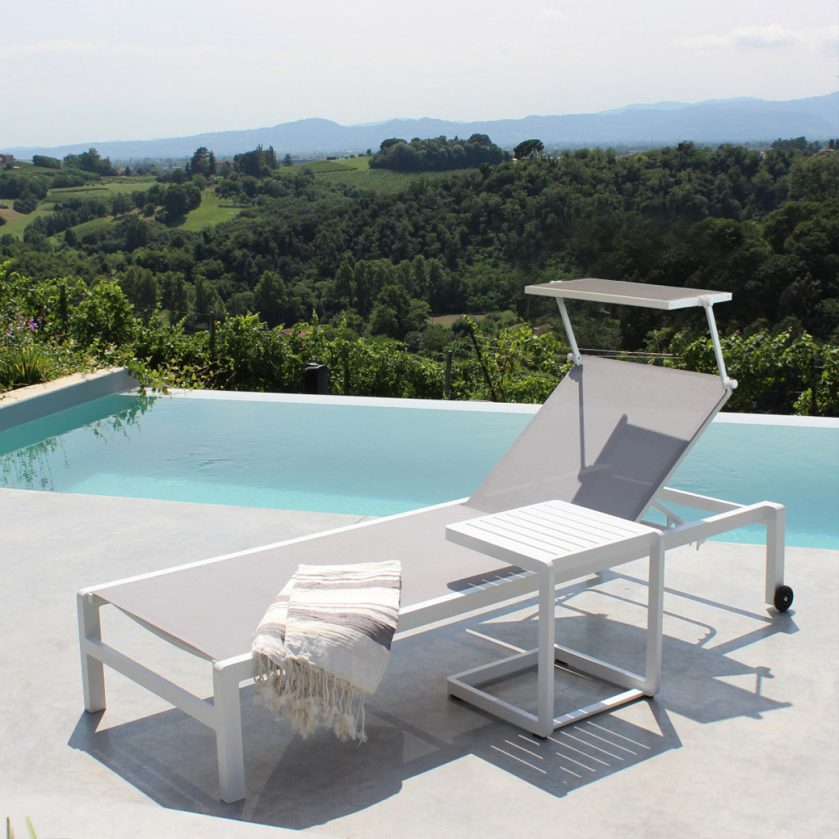 Struttura in alluminio verniciato BIANCO o ANTRACITE o TAUPE textilene 2 x 1 con tettuccio Dimensioni: cm 195 x 78 x 32/54 h