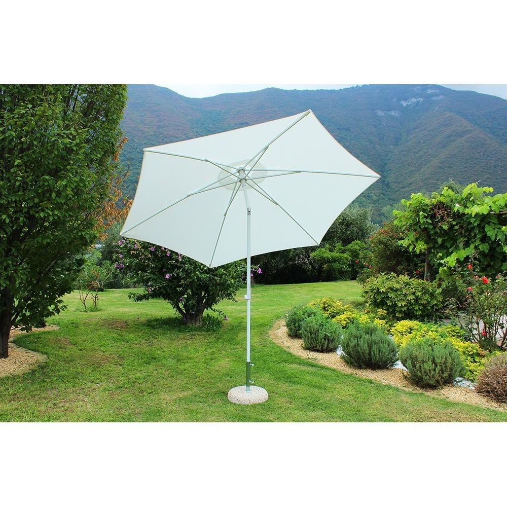 L?ombrellone rotondo SSARONNO dal diametro di cm 300 ha il telo in poliestere 100% in color bianco .