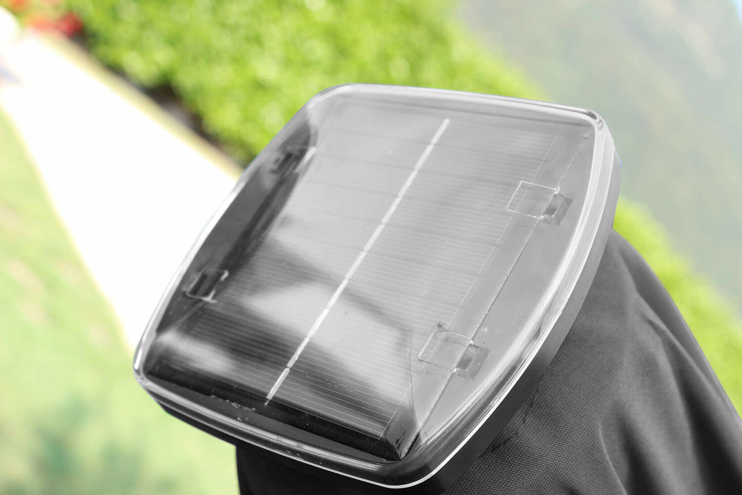 Grazie al pannello superiore ad alimentazione solare questo ombrellone assicura un funzionamento ottimale in ogni angolo del tuo giardino, senza necessità di doverlo collegare alla rete elettrica. La presenza del camino antivento superiore facilita la fuoriuscita dell'aria in caso di folate di vento improvvise, a tutto vantaggio della stabilità. La copertura superiore è realizzata in poliestere resinato da 180 grammi per assicurare un tessuto traspirante e idrorepellente.