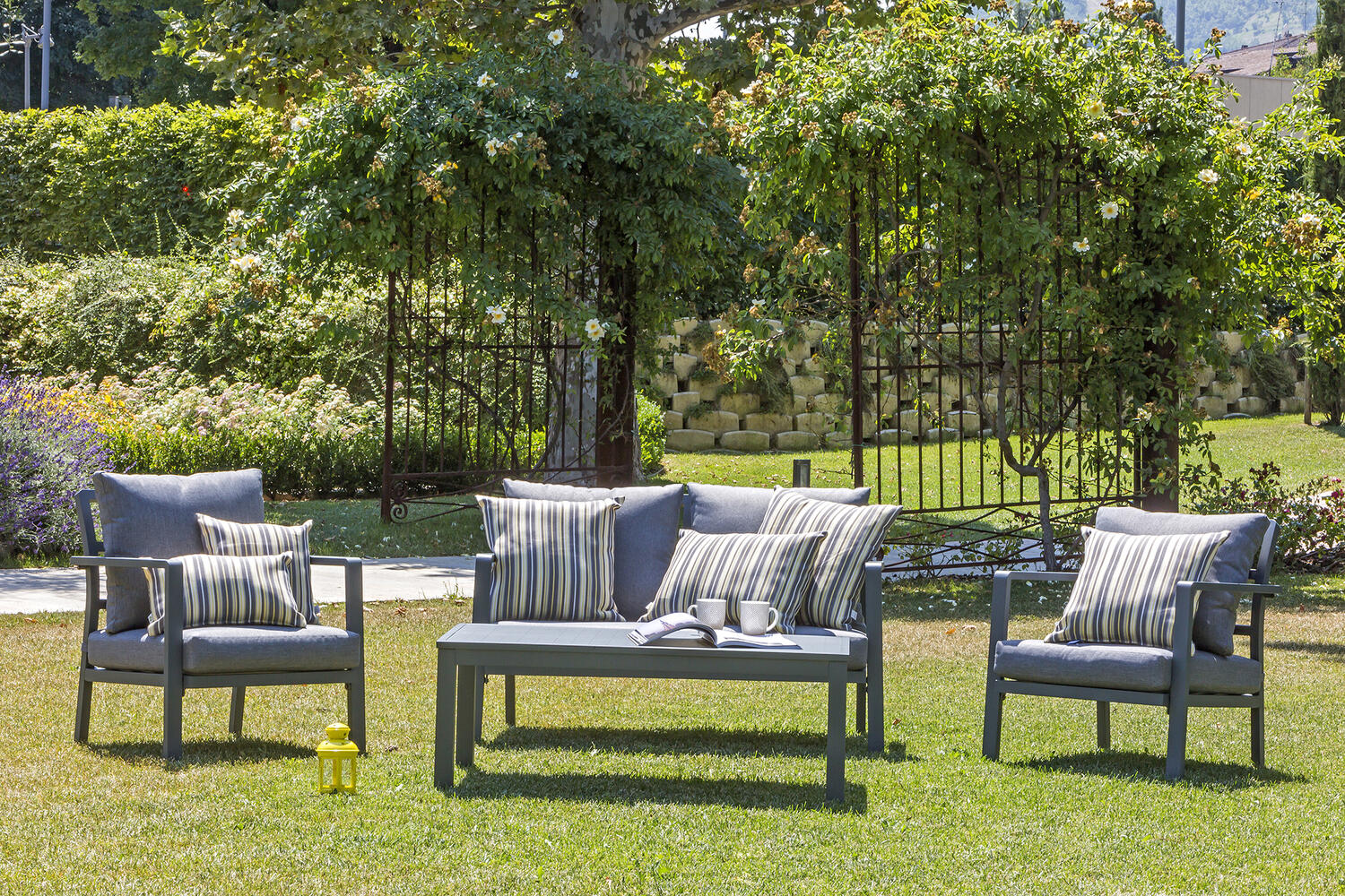 Il suo design si adatta perfettamente ad ogni tipo di arredamento, dura a lungo nel tempo e necessita di poca manutenzione. Sia la struttura in alluminio che le fodere lavabili dei cuscini sono facili da pulire.