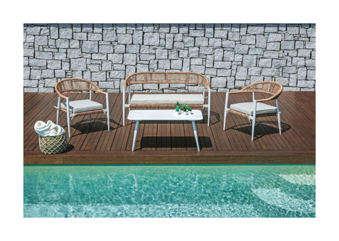 Stile alternativo che non passa inosservato per chi desidera sempre qualcosa di originale giocando con forme, materiali e colori: questo set da giardino unisce il design ricercato alla qualità, affermandosi come unico nel suo genere. Il set, composto da tavolino, due poltrone e divano 2 posti, è un elemento d'arredo versatile e pratico in quanto il suo peso e dimensioni ridotte ti permettono di spostalo facilmente e cambiar volto al tuo giardino, alla veranda, al tuo balcone o al dehor del tuo locale.