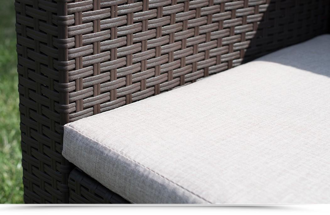 Gli arredi da esterno & giardino realizzati in polipropilene effetto rattan sono più resistenti all'usura del tempo perché sono impermeabili, resistono alle macchie e al calore e non hanno bisogno di manutenzione o di trattamenti particolari. La leggerezza del materiale, inoltre, permette di poter ridefinire costantemente l'aspetto e il carattere del vostro giardino o del vostro terrazzo. Arredare il Vostro giardino con il nostro salotto da giardino effetto rattan sarà la scelta vincente