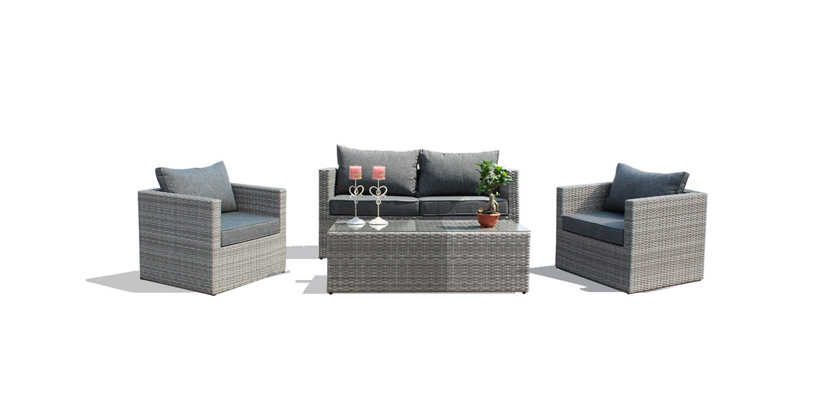 Salotto da giardino in alluminio ALBEROBELLO 2 POSTI con divano 2 posti 2 poltrone e tavolino in wicker grigio
