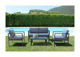 Comode poltrone e un elegante tavolo invitano a trascorre piacevoli ore insieme. Il set in alluminio e textilene piace non solo per l?eleganza ma anche per la sua lunga durata.