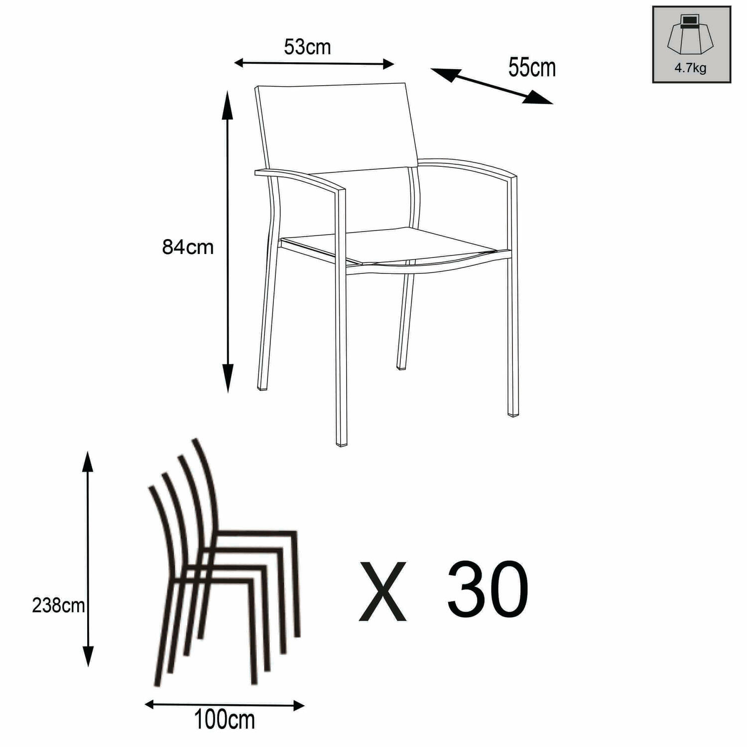 Poltrona impilabile Florinda acciao spazzolato e textilene con braccioli.