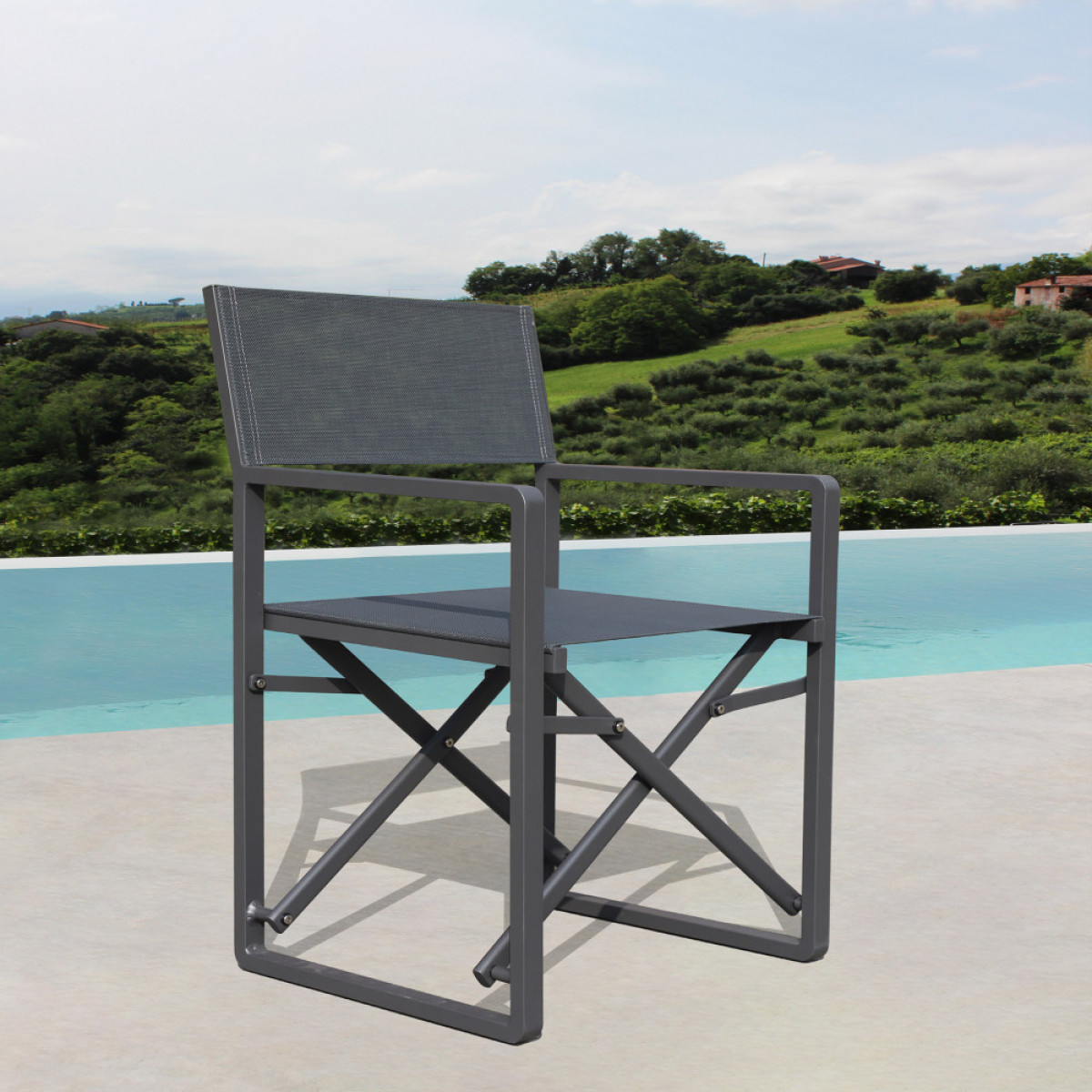 Struttura in alluminio verniciato BIANCO o ANTRACITE con textilene bianco o antracite Dimensioni: cm 55 x 46 x 85 h