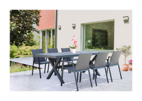 TAVOLO DA GIARDINO in alluminio colore antracite, piano del tavolo in gres in gres effetto legno