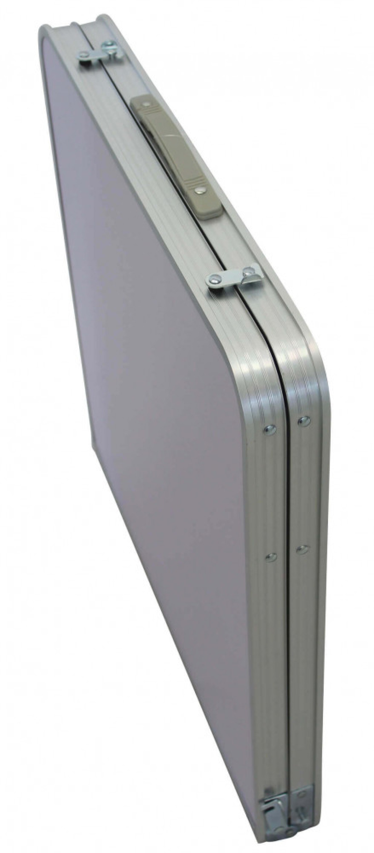 Disponibile GRIGIO Tavolo: Tubi in alluminio Ø 25 x 0,8 / Ø 22 x 1 mm Sgabello: struttura in metallo Ø 16 mm, tessuto in oxford 600D, T. portata max 30 kg S. portata max 90 kg Dimensioni: T.120x60x36/68,5/S.35x28x38