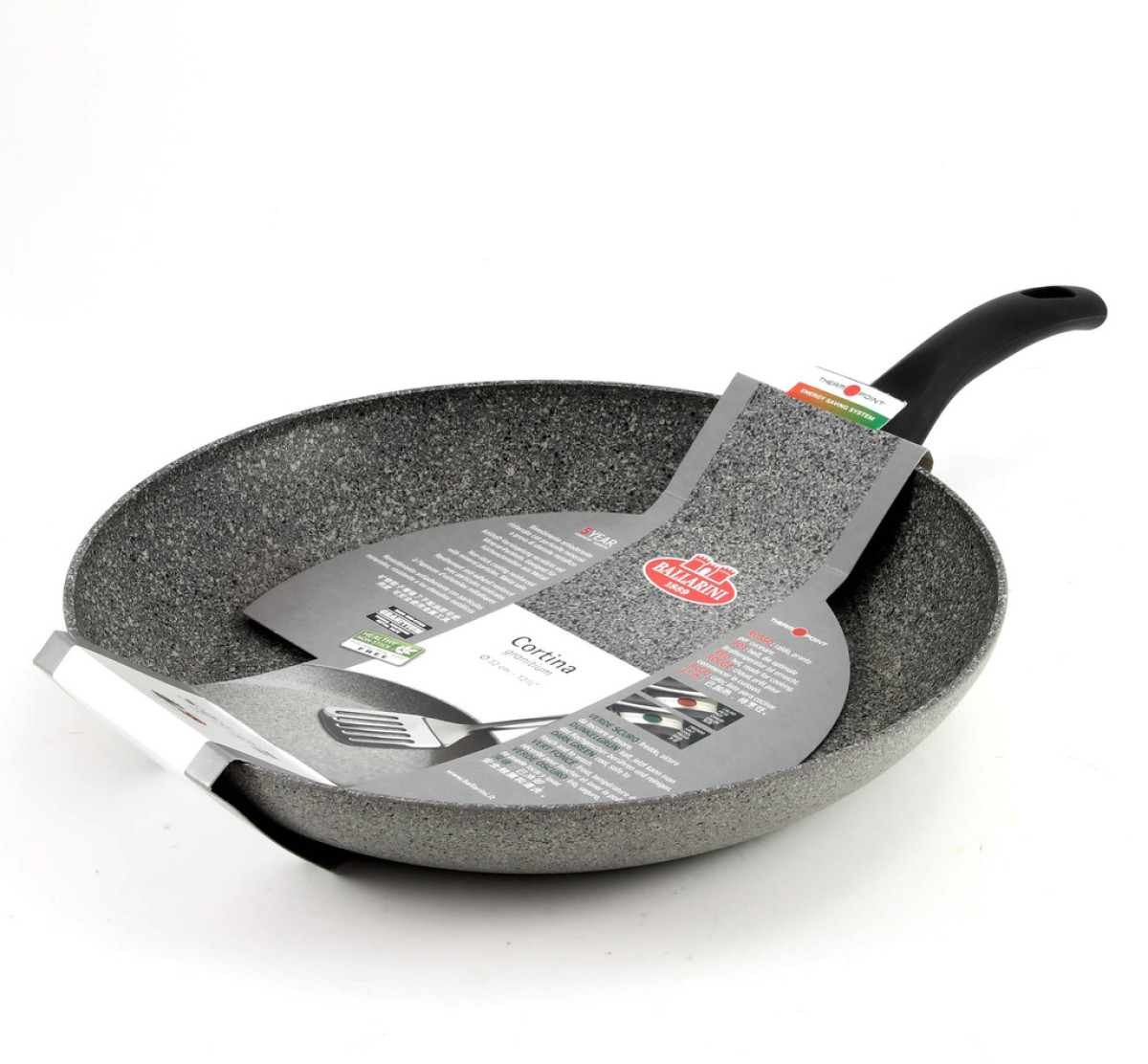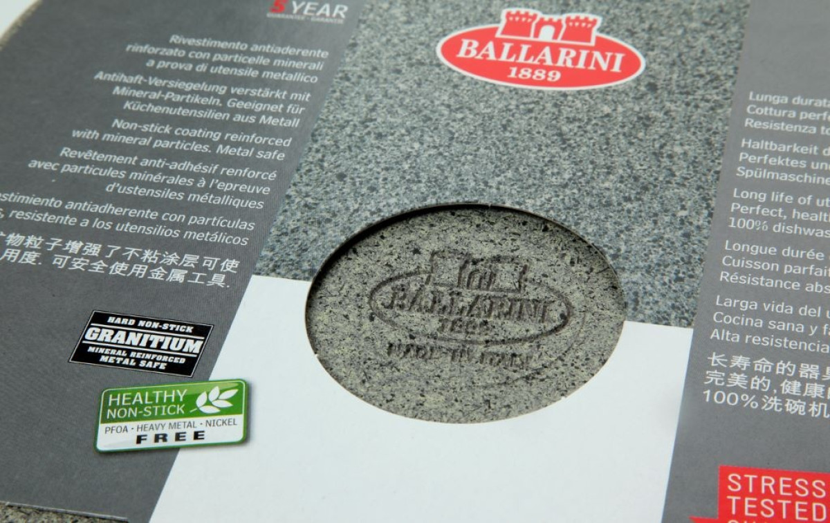 La sua superficie di cottura è realizzata con piccole particelle di pietra unite che la convertono nella padella più resistente del mercato. Granitium si riscalda rapidamente e mantiene il calore per più tempo.La superficie in pietra è dieci volte più resistente e dura dieci volte più a lungo dei normali rivestimenti antiaderenti.Quindi non brucia non scolorisce e non si squama.La padella Granitium è perfetta perché può raggiungere alte temperature.E? la migliore padella in assoluto. Esalta il vero sapore del cibo. Con Granitium potete cucinare molluschi frutti di mare cozze ostriche? senza il rischio di rovinarla. Potete anche usare un cucchiaio di metallo senza graffiarla.Potrete cucinare in modo più salutare infatti non occorre aggiungere olio o altri grassi.Con le normali padelle i succhi naturali del cibo fuoriescono e rimangono in superficie.Granitium cuoce il cibo esternamente mantenendone i succhi all?interno. Così la carne e il pesce sono più teneri succosi e gustosi. Le verdure sono più croccanti e cotte alla perfezione.?