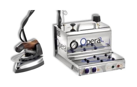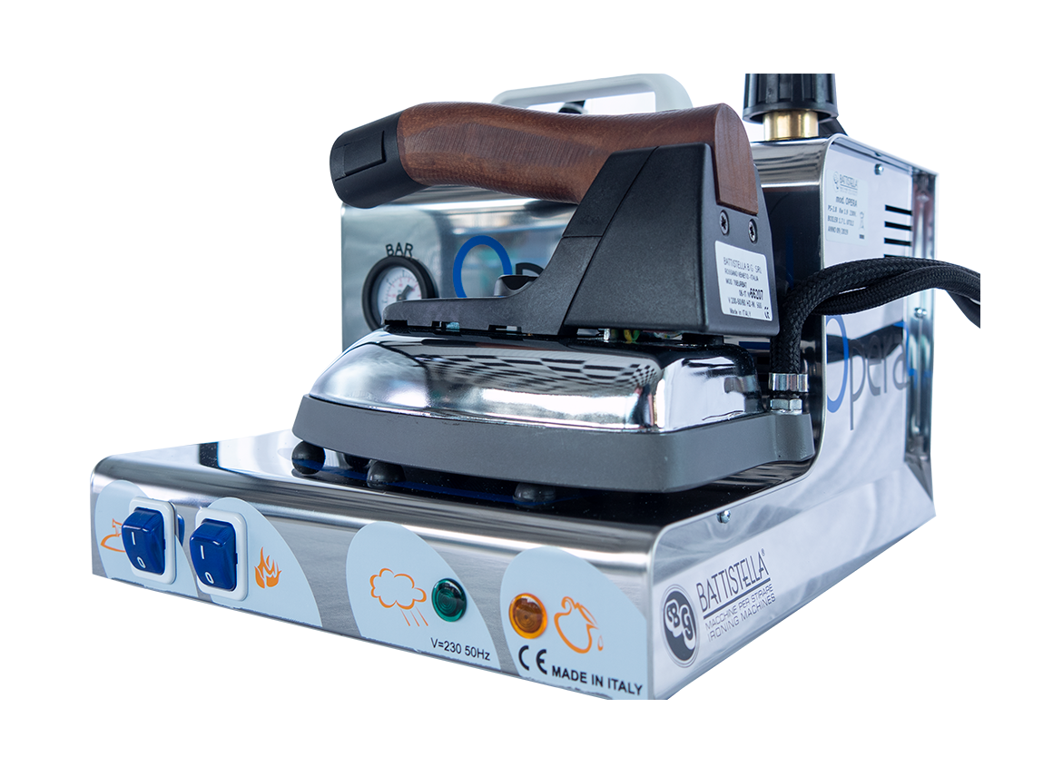 • Generatore di vapore Battistella Opera con carrozzeria in acciaio inox, completo di ferro da stiro ergonomico, con piastra teflonata e vapore direzionabile in punta, valvola regolabile, doppia valvola di sicurezza, termostato di sicurezza in caso di avaria, manometro visivo della pressione e caldaia inox da 1,7 lt. utili.•