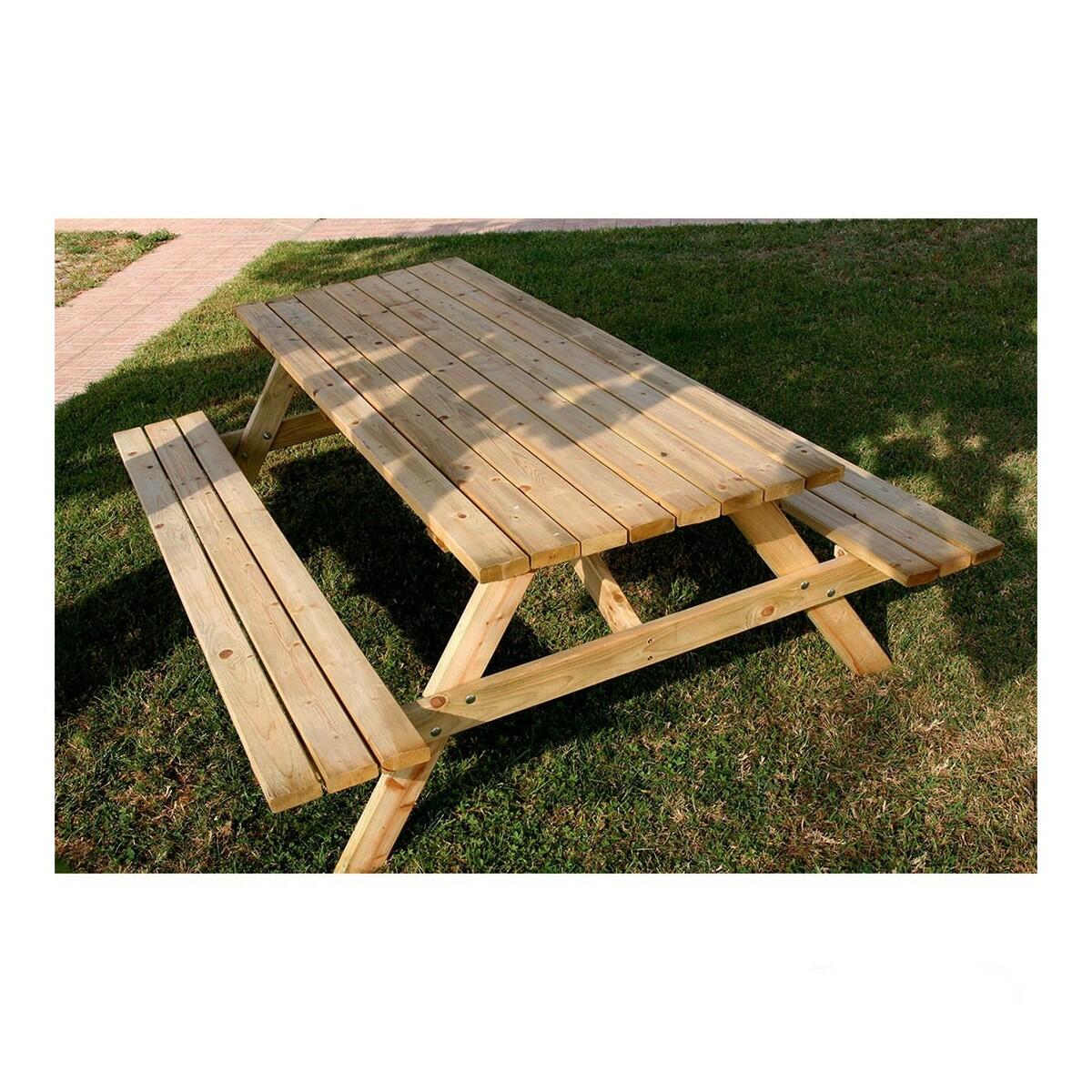 Realizzato interamente in legno di conifera con robusti e solidi listoni, il set è composto da un tavolo con due panchine incorporate ed è progettato per resistere all?azione degli agenti esterni a lungo termine. L?impregnazione in autoclave garantisce l?elevata resistenza del legno contro muffe, funghi, marcescenze e umidità, rendendolo pronto per l?uso esterno senza bisogno di ulteriore manutenzione. Semplice da assemblare, anche grazie alle istruzioni di montaggio, con le sue linee semplici e tradizionali il tavolo da pic nic con panche si adatta perfettamente a qualsiasi tipo di spazio aperto.