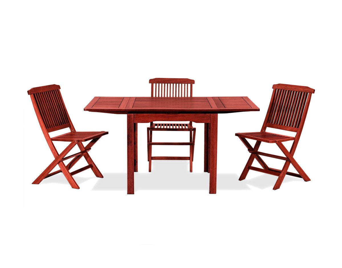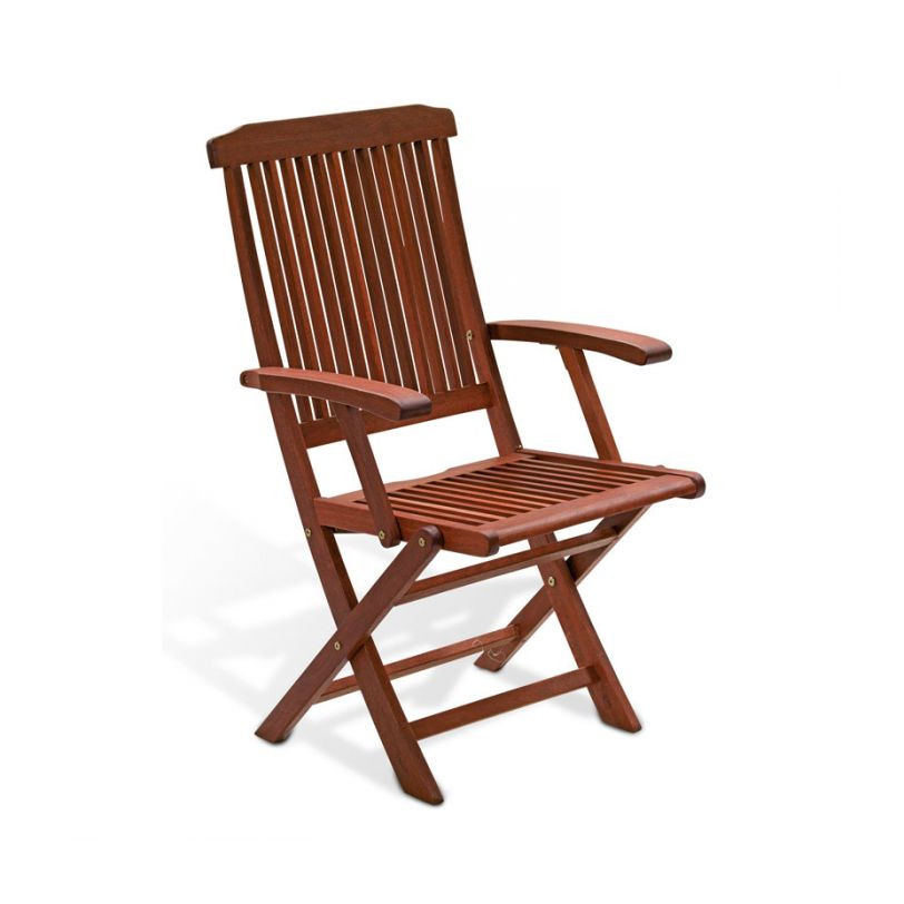 Le sedute MAGNOLIA sono realizzate in legno di keruing, perfetto per gli arredi da esterno grazie alla sua durezza, e sono tutte pieghevoli. Il sistema di chiusura è innovativo e sicuro, senza rischio di schiacciarsi le dita.