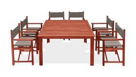 LILIUM è una elegante poltrona in legno di keruing che si presta a tutte le occasioni di vita all'aperto, dai pomeriggi di relax giocando a carte ai pranzi in giardino nella bella stagione.