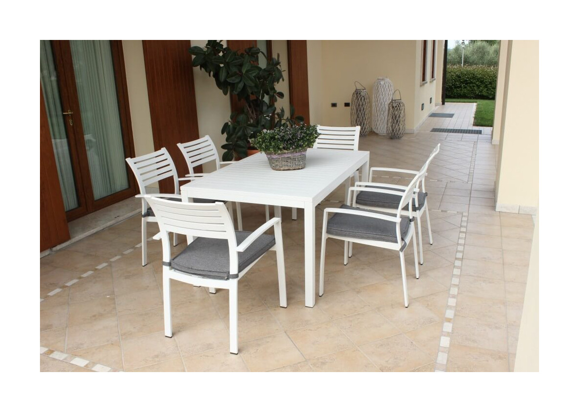 • Progettato per uso esterno questo tavolo da pranzo è perfetto per ogni tipo di patio, giardino o veranda. La sua struttura a stecche è robusta grazie all'alluminio verniciato a polvere, facile da pulire, il materiale plastico del piano è completamente riciclabile e durevole nel tempo.
