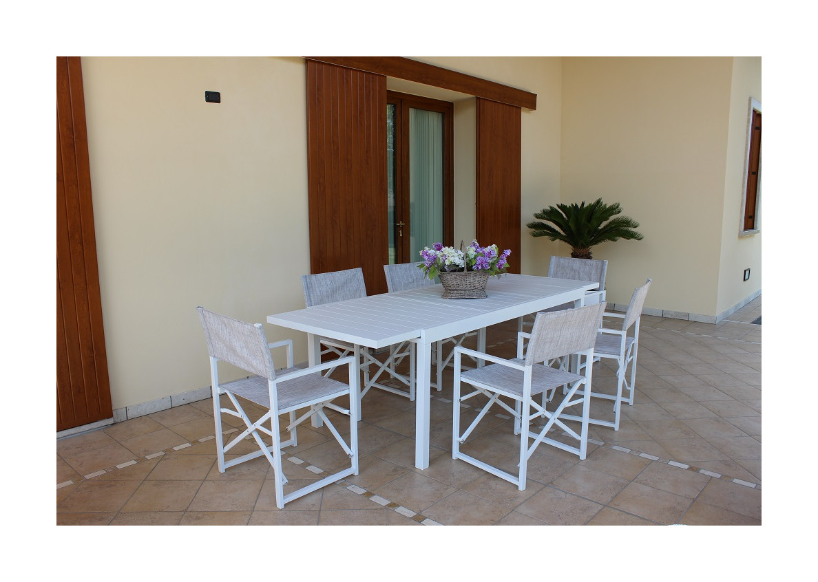 L'alluminio è il materiale ideale per le finiture dei vostri arredi outdoor, resistente agli agenti atmosferici e durevole nel tempo. In famiglia o con gli amici, sarà un piacere rilassarsi nei mesi più caldi grazie al set allungabile acquistabile su fabio.pro