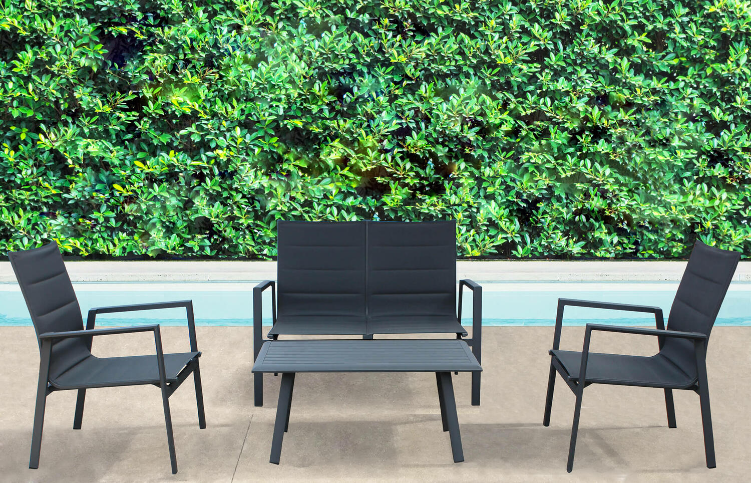 Tutto questo è possibile grazie una ricerca dei migliori materiali: la struttura in alluminio conferisce una resistenza e una duratura ineguagliabile, la rifinitura in textilene conferisce un'aspetto elegante che non stona in nessun ambiente.
