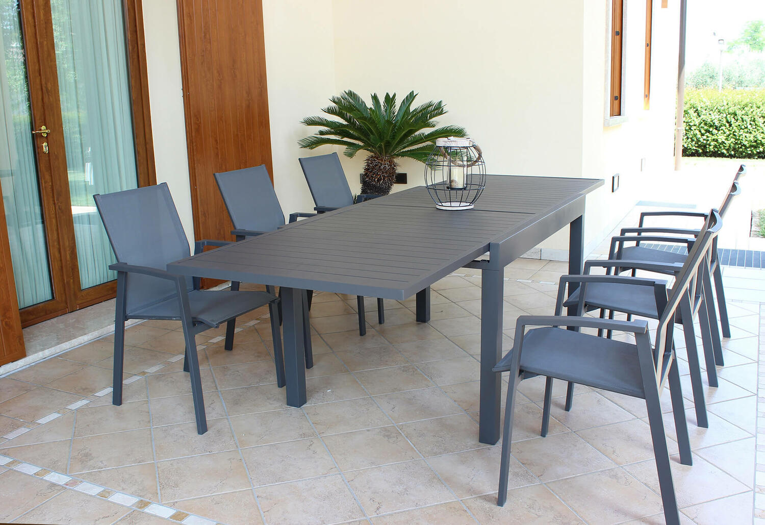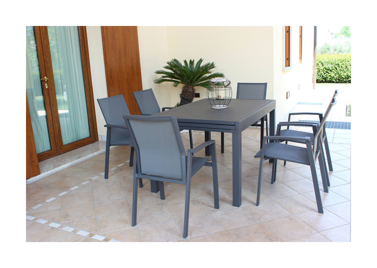 L'alluminio è il materiale ideale per le finiture dei vostri arredi outdoor, resistente agli agenti atmosferici e durevole nel tempo. In famiglia o con gli amici, sarà un piacere rilassarsi nei mesi più caldi grazie al set allungabile acquistabile su fabio.pro