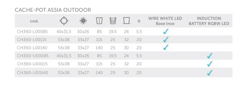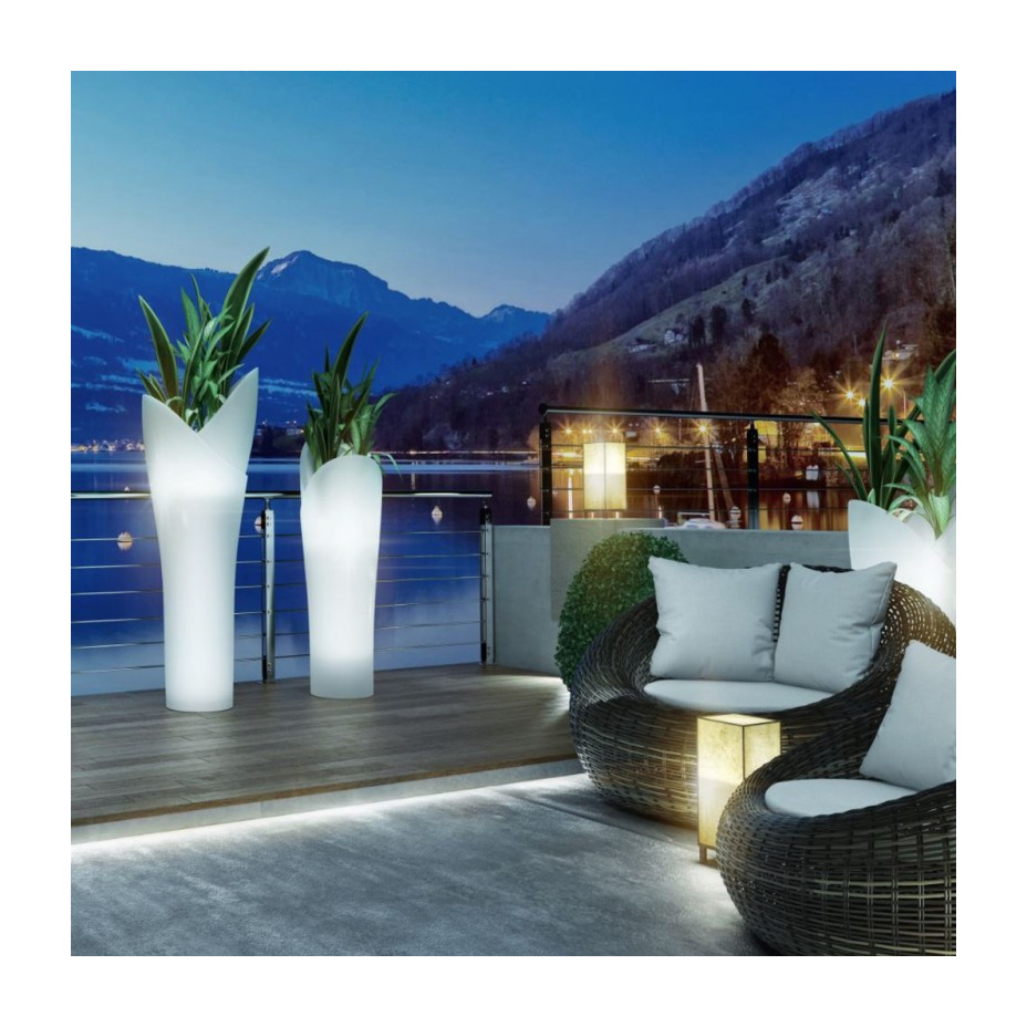 Raffinato ed elegante, ASSIA è un vaso cache-pot a colonna con luce dal fascino inconfondibile. Le sue forme armoniche simili ad un tulipano, fanno di ASSIA un valido alleato nel creare ambientazioni uniche, sia in contesti di interior design che nell'arredo di spazi outdoor. La luce, che si espande uniformemente in tutta l'altezza del vaso, crea atmosfere soffuse, ideali per momenti di relax in giardini privati o eventi contract. Ottimo con piante e fiori a cascata.