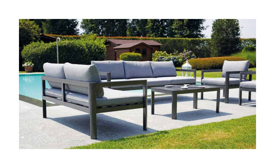 • DIVANO 3 POSTI in alluminio verniciato per esterni di colore grigio antracite.