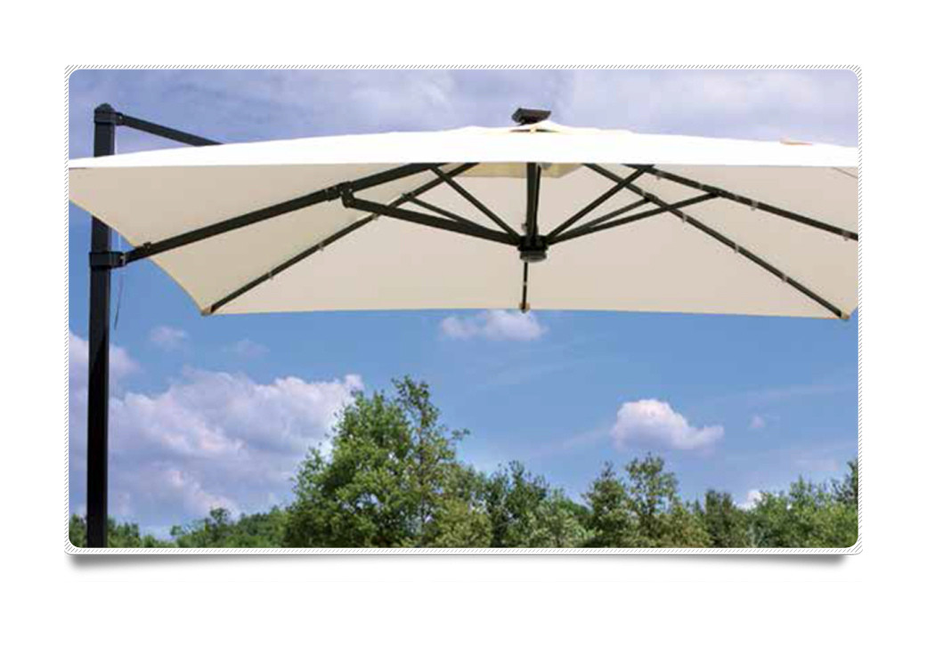 La gamma di ombrelloni per esterno propone svariate soluzioni proposte in differenti misure: la nostra gamma è l'unica ad offrire questo elegante ed innovativo ombrellone da giardino con luci LED integrate.