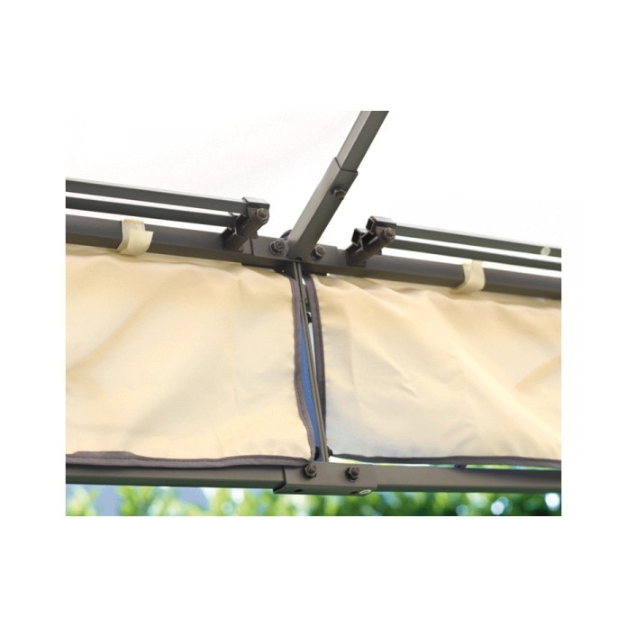 Telo di copertura (con antivento) color sabbia e tende laterali in poliestere 210 gr m2 color ecrù