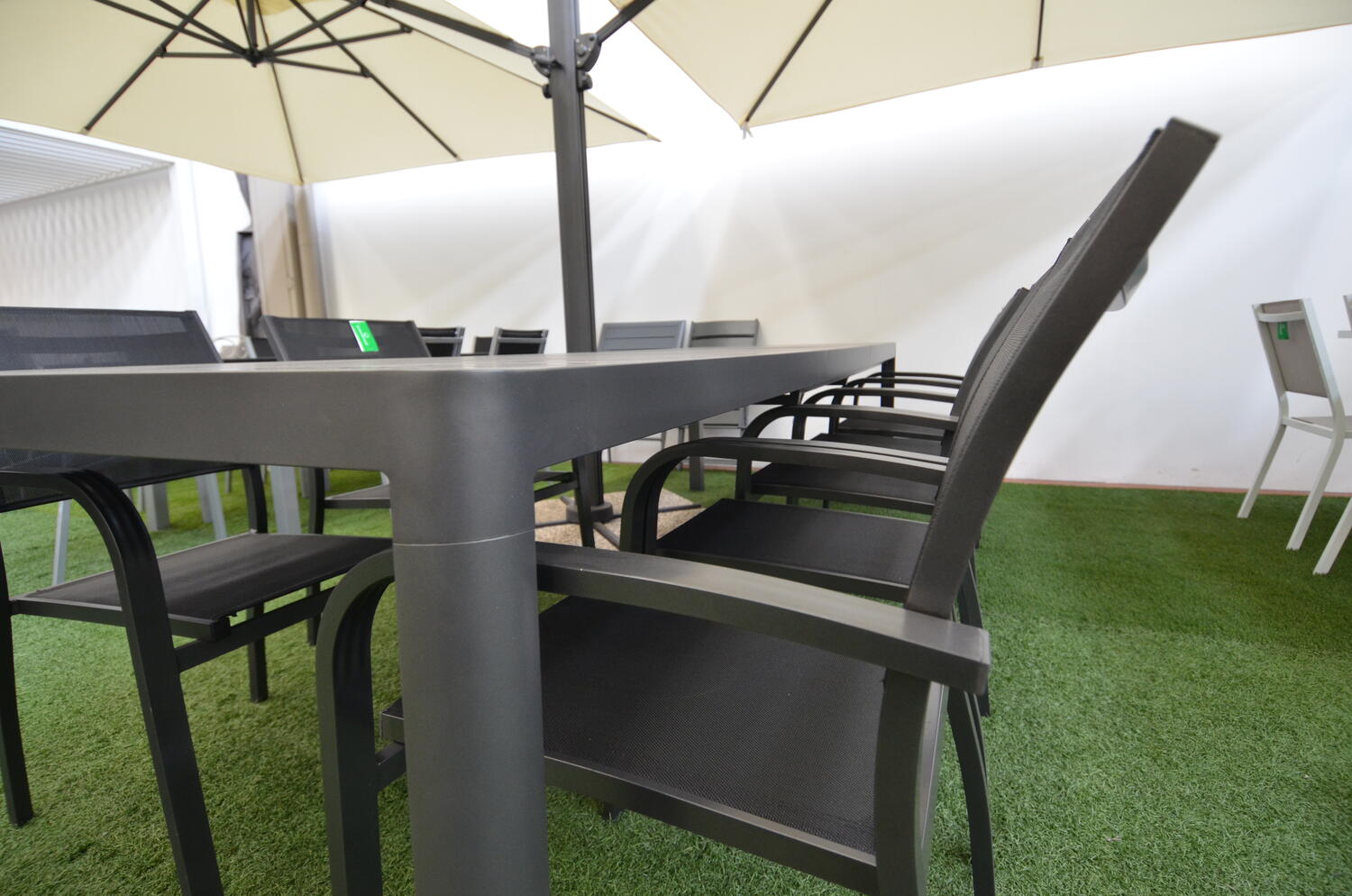 Elegante, resistente e pratico questo set pranzo da giardino in alluminio è perfetto per pranzi e cene all'aria aperta in compagnia della tua famiglia o dei tuoi amici.