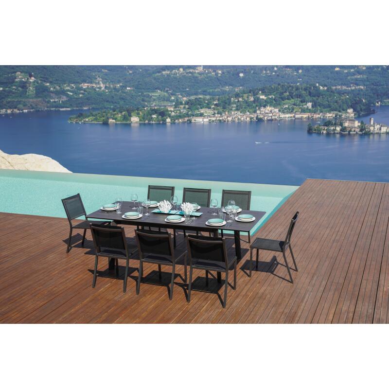 Elegante, pratico e moderno, grazie al sistema allungabile è adatto per ogni tipo d?occasione, anche quelle più numerose. Tramite l'allunga centrale permette di passare da un piano lungo 160 cm a 240 cm per far così posto fino a 8-10 persone. Realizzato in alluminio color antracite, con il suo stile lineare si adatta inoltre ad ogni tipo di outdoor garantendo massima resistenza e versatilità per l'uso esterno. Completalo con un set di sedie dello stesso stile, come la VIAREGGIO o la VOLTERRA con comodi braccioli. Le trovi sul nostro catalogo.