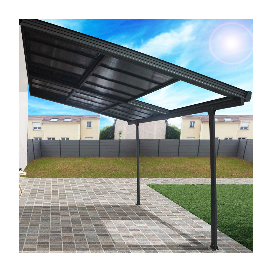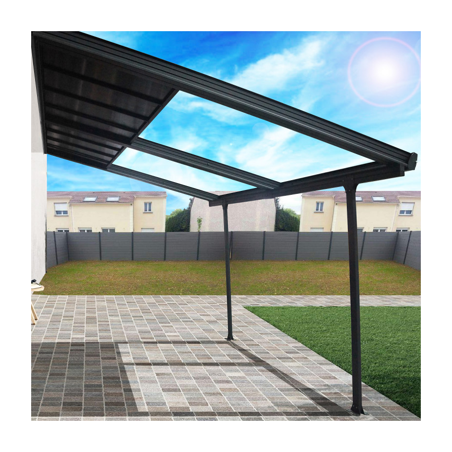 Pergola addossata al muro in alluminio grigio scuro rinforzata con pannelli smontabili misura 3 x 4