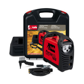 Composizione: cavo 10 mmq 2 m dinse 25, cavo 10 mmq 3 m dinse 25, pinza porta elettrodo, spazzola, maschera, pinza di massa 250A, vetro filtro mm 51x108.