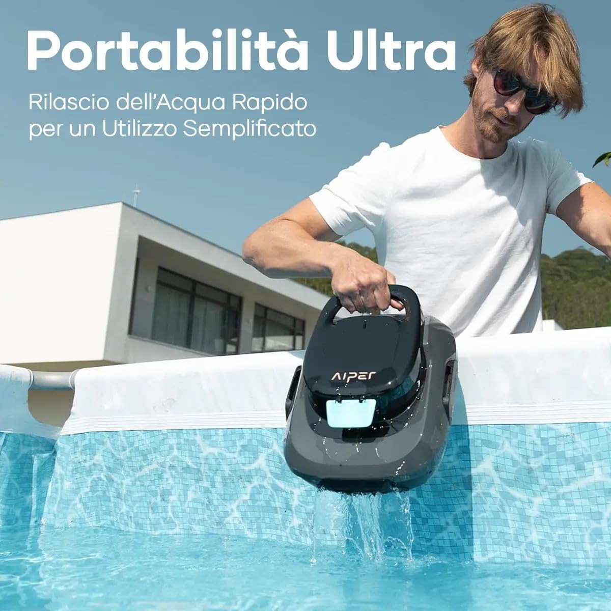 La società americana Aiper, lancia sul mercato una nuova gamma di robot pulitori completamente privi di cavi, che li rende più abili nel loro percorso di pulizia all?interno della piscina e più facili da riporre.