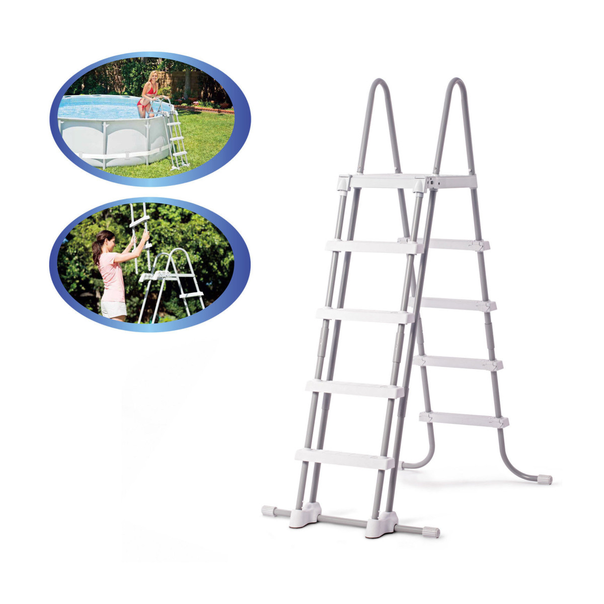 La scala per piscina Intex 28077 è idonea anche all'utilizzo nelle piscine Gre e Bestway, i materiali utilizzati sono tutti di altissima qualità e i gradini, 5 per lato, sono realizzati in materiale antiscivolo per garantirne la sicurezza sia in salita che in discesa.
