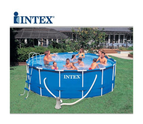 Piscina Intex rotonda con diametro di 457 cm ed altezza bordo 122 cm.