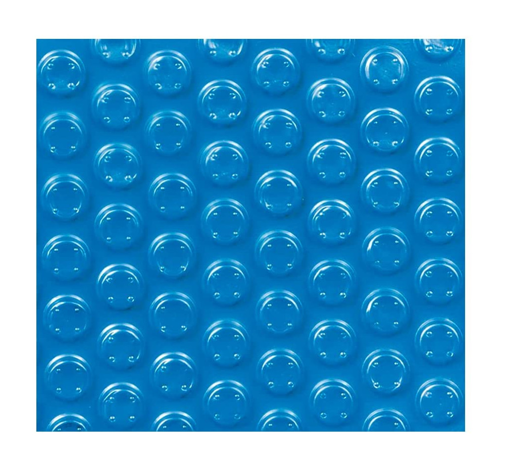 Il telo galleggia sul livello dell'acqua, il suo diametro è 538 cm (è appositamente più piccolo della piscina perchè non è una copertura classica che protegge solo da foglie e insetti ma ha anche la funzione di riscaldare e mantenere la temperature all'acqua quindi deve essere a contatto con essa). Sulla parte superiore dei teli termici ci sono dei buchi per motivi di sicurezza.
