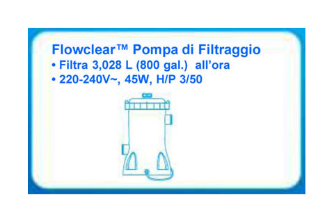 Fast Set Pool è dotata di pompa elettrica filtrante dalla portata di 3.028 l/h.