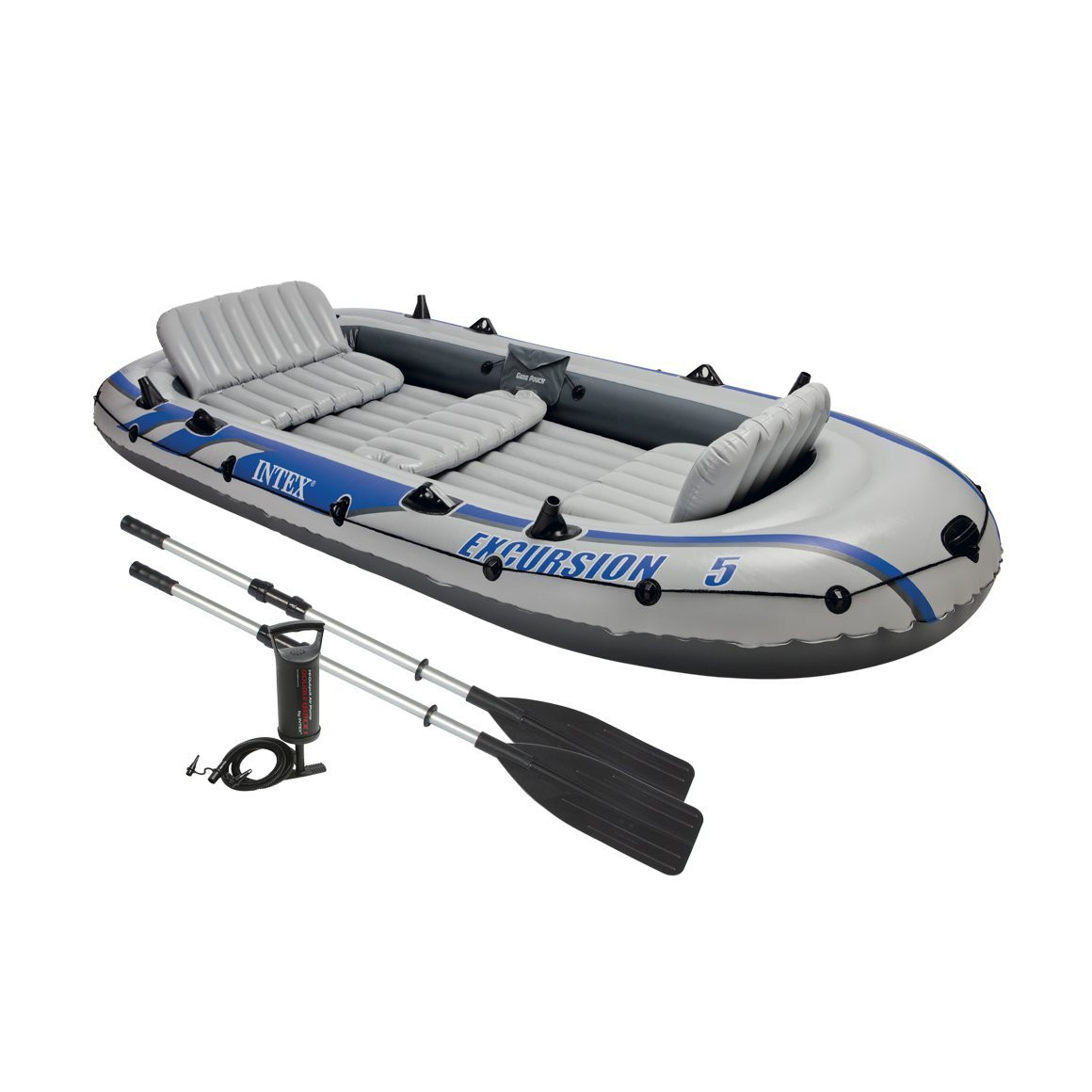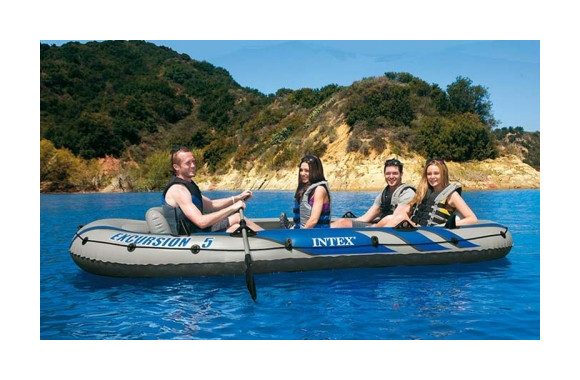 Canotto gonfiabile professionale Intex 68325 Excursion 5 versione NUOVA dotato di 3 camere d'aria di cui una interna ausiliaria per garantire maggior sicurezza e galleggiamento. Portata 5 persone, misura 366 x 168 x 43 cm. Dotato di Valvole Boston di sicurezza per gonfiaggio sgonfiaggio rapido, realizzato in Vinile ultra resistente (spessore materiale 0.75mm)