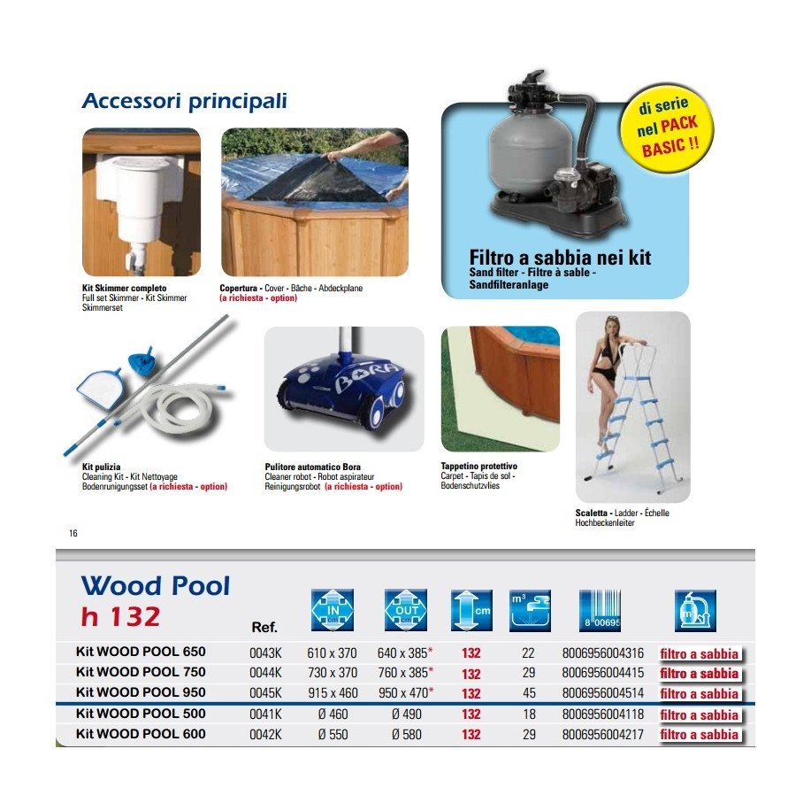 0043k PISCINA NEWPLAST KIT WOOD POOL 650 FILTRO A SABBIA H 132