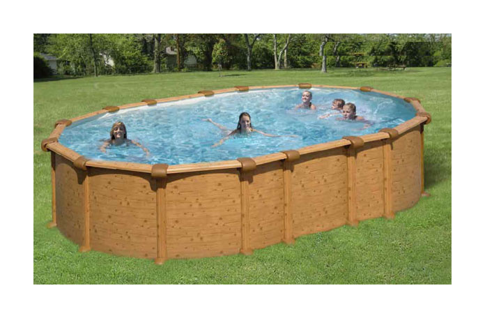 Piscine componibili in acciaio ?simil legno? ondulato e preverniciatp con uno speciale trattamento anticorrosivo. Vasca in PVC K80 H.Q. trattato anti UV ed antialghe. Montanti in metallo ad alta tenacità e bordo superiore da 20 cm per conferire robustezza e comfort alla piscina