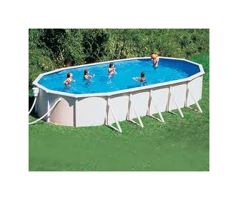La piscina è ovale con dimensioni 6,10 ? 3,70 m ed un?altezza di 1,20 m, per un volume complessivo di 22 mc di acqua. L?ingombro è di 6,35 ? 3,85 m.