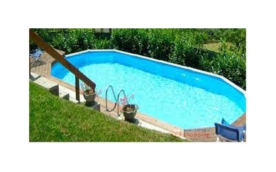 La piscina è ovale con dimensioni 9,15 ? 4,60 m ed un?altezza di 1,30 m, per un volume complessivo di 45 mc di acqua. L?ingombro è di 9,40 ? 4,75 m.