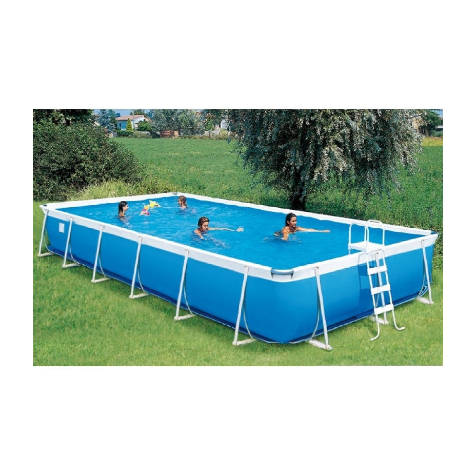 Supreme 1000 è una piscina fuori terra Technypool di dimensioni cm 915 ? 520 ? 132 (altezza) e capacità 58mc. L?ingombro esterno è di cm 951 ? 566 ? 132 (altezza).