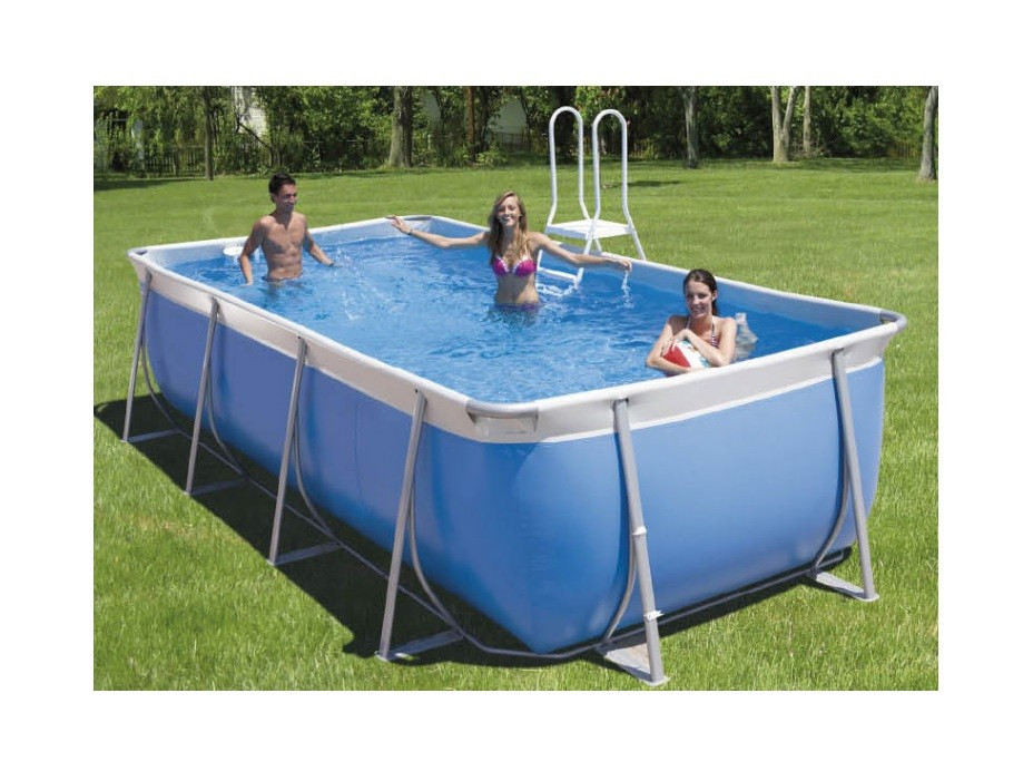 Dimensioni cm 395 x 265 H 125. Il kit comprende: piscina, kit skimmer, gruppo filtrante a sabbia, kit collegamento piscina-filtro, scaletta, sabbia per filtro, kit per il mantenimento e prodotti per la depurazione.