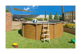Piscina componibile in acciaio simil legno ondulato e preverniciato con uno speciale trattamento anticorrosivo.