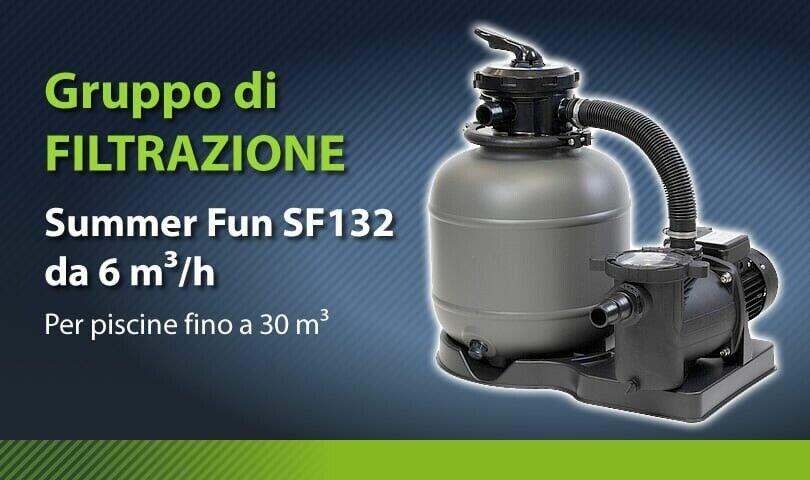 Il filtro a sabbia Summer Fun SF132 è adatto per piscine fino a 30 m³.