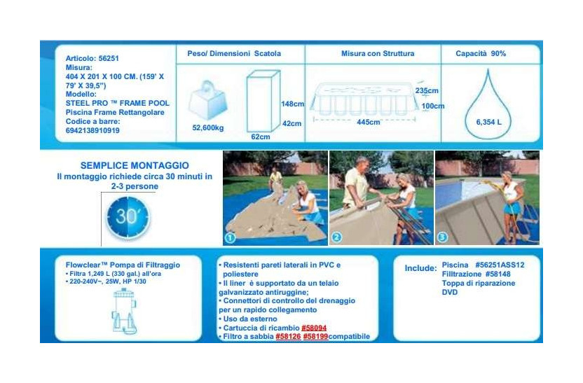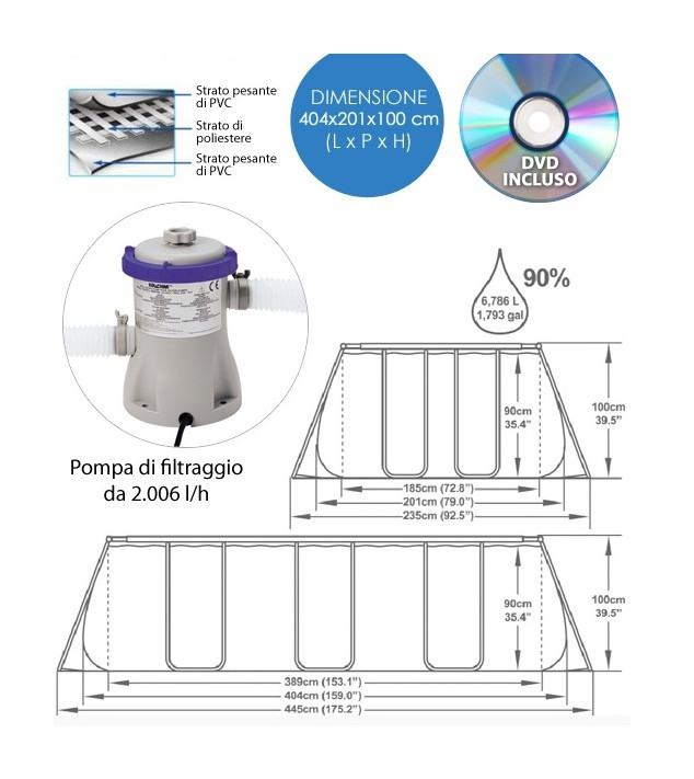 Dimensioni della piscina: 404 X 201 X 100 cm