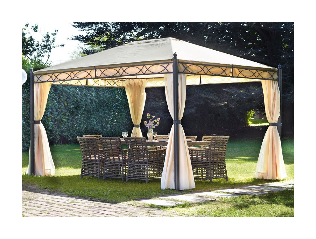 Gazebo da giardino CARNIVAL 34 in metallo telo beige e teli laterali CON TELO PVC IDROREPELLENTE
