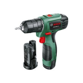 Trapano-avvitatore con batteria al Litio da 10,8 Volt/1,5 Ah, 2 velocità, mandrino autoserrante a due bussole 10 mm, Auto-Lock, ? foro legno 20 mm, ? foro acciaio 6 mm, ? viti max 6 mm, 15+1 posizioni regolazione della coppia, coppia max 11 Nm (avvit. elastici) e 20 Nm (avvit. duri), Syneon chip per dosaggio automatico ed intelligente della potenza e della durata della batteria in funzione del progetto, Powerlight, Softgrip, ECP Bosch. In dotazione: 2 batterie, stazione di ricarica AL 1110 CV bit di avvitamento doppio, valigetta.